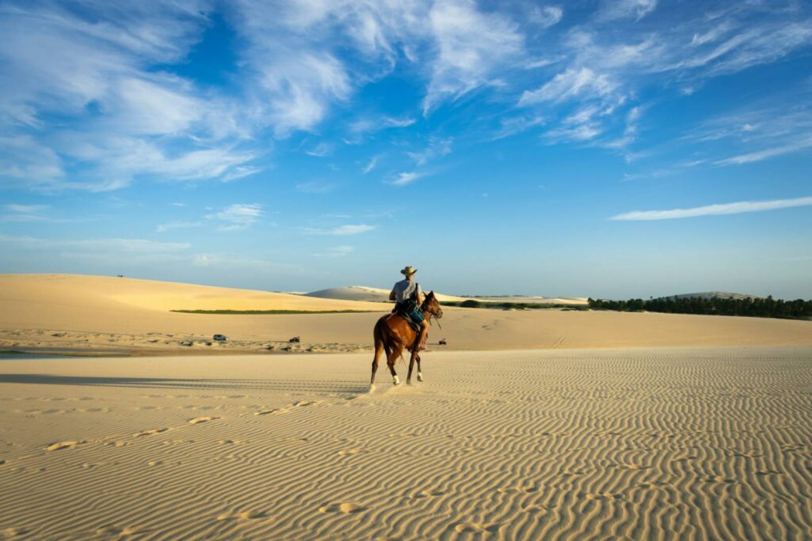 En horario a definir, salida en vehículo 4×4 desde Fortaleza con destino a Jericoacoara, el trayecto se realiza por carretera y tiene una duración promedio de 5 horas. Durante el recorrido, el tramo de Jijoca – villa de Jericoacoara pasa por la playa de Preá y por el Parque Nacional de Jericoacoara.